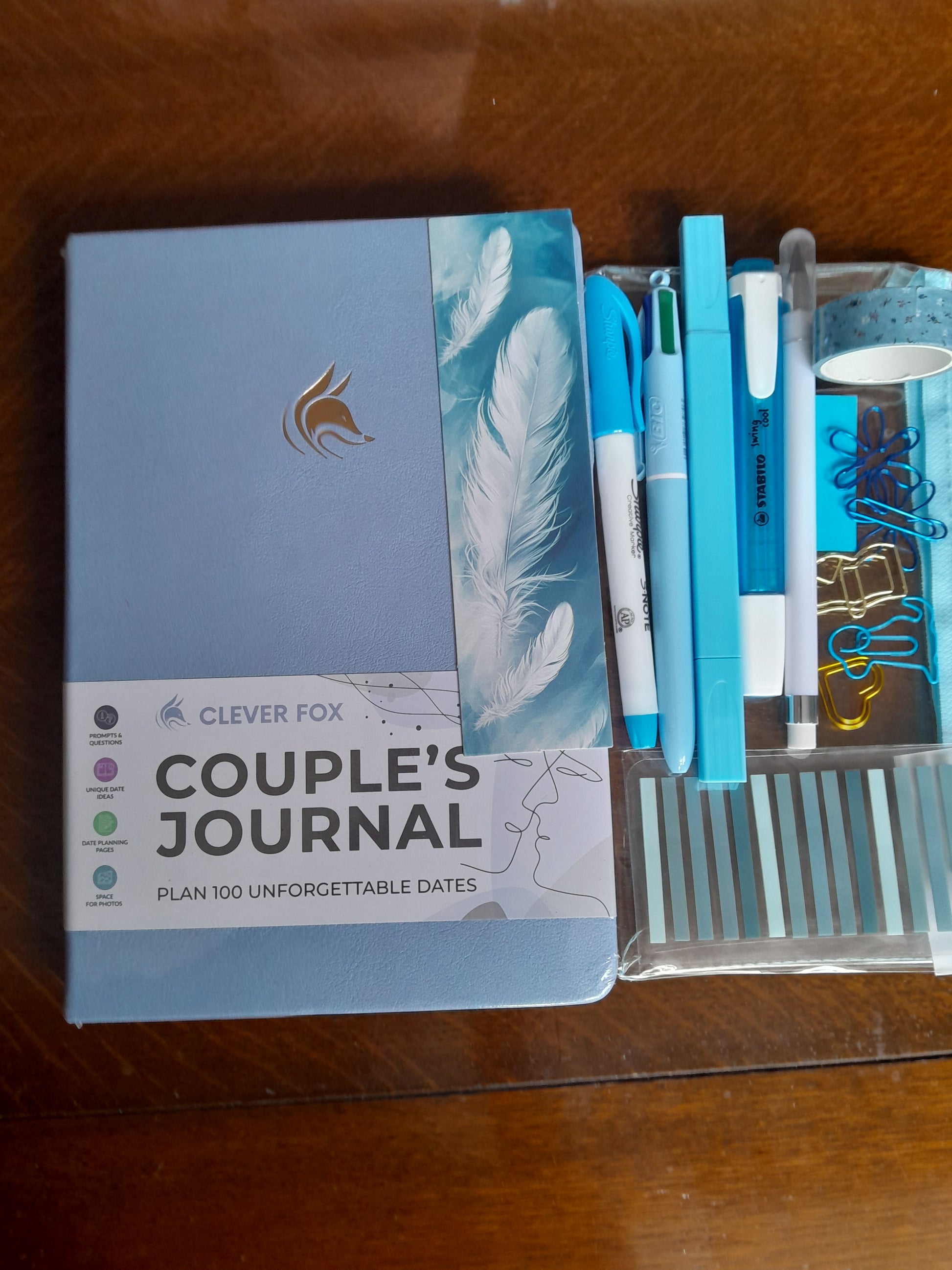 Clever Fox Couples Journal in light blue comes with a lovely selection of stationery.