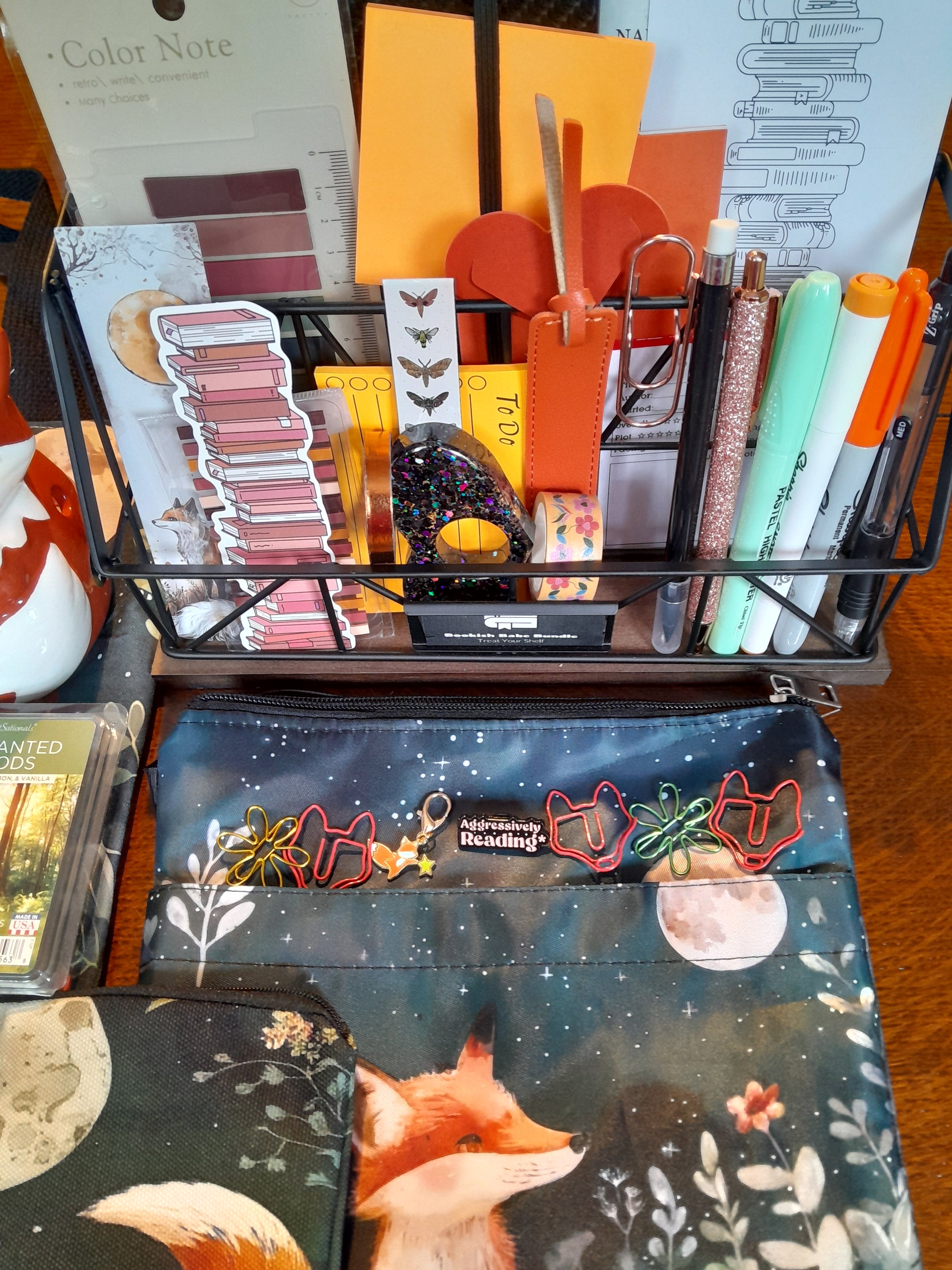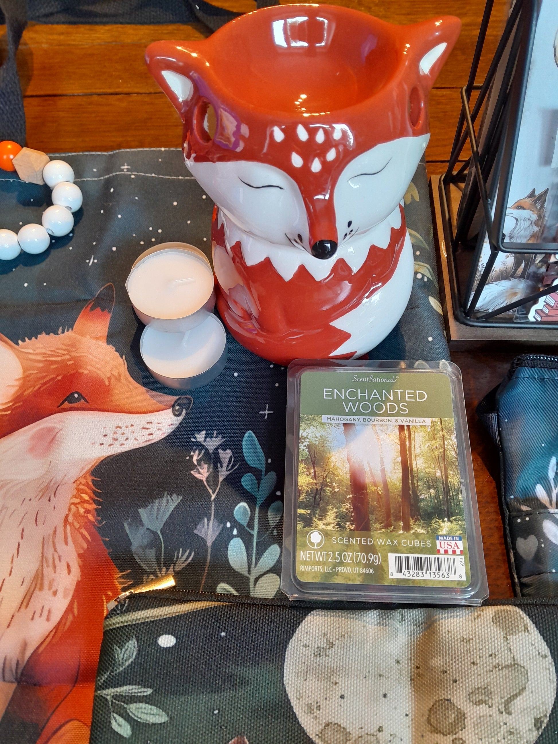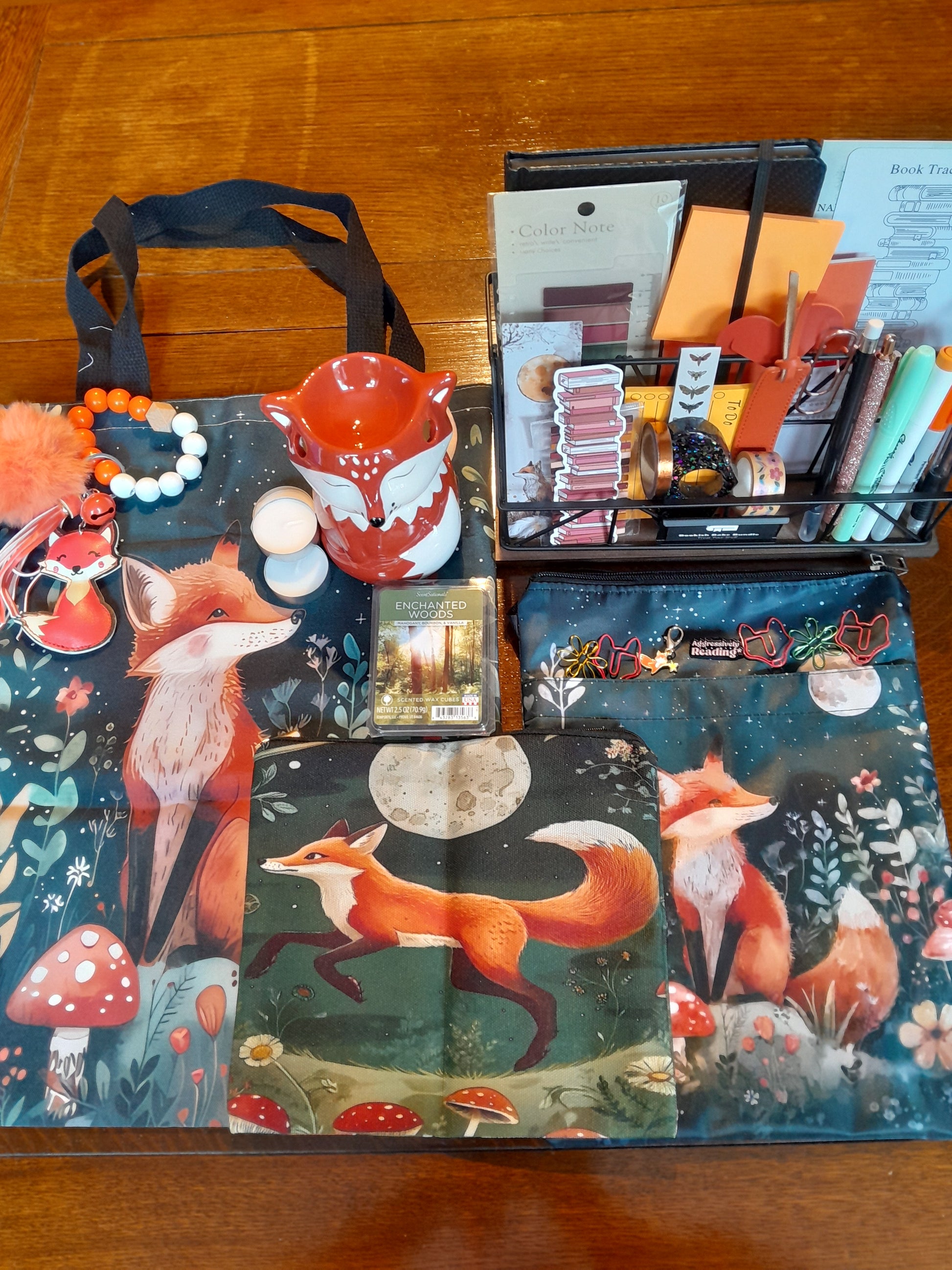 A beautiful fox themed bundle with a tote bag, book sleeve and storage pouch. Also includes a wax melt burner, a foxy wristlet/ bag charm and lots of lovely stationery.