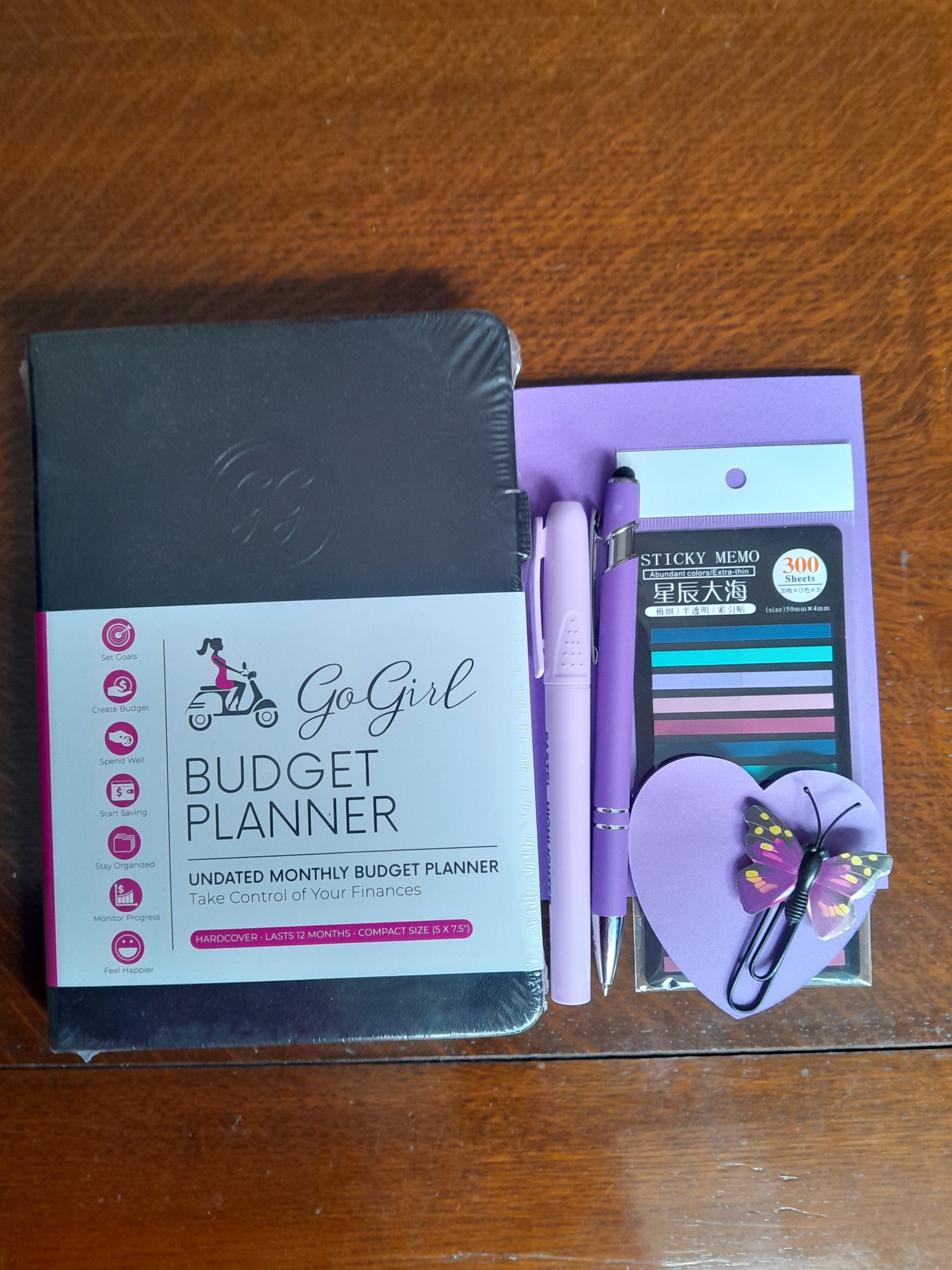 Go girl budget planner in black. Comes with a lovely selection of stationery.