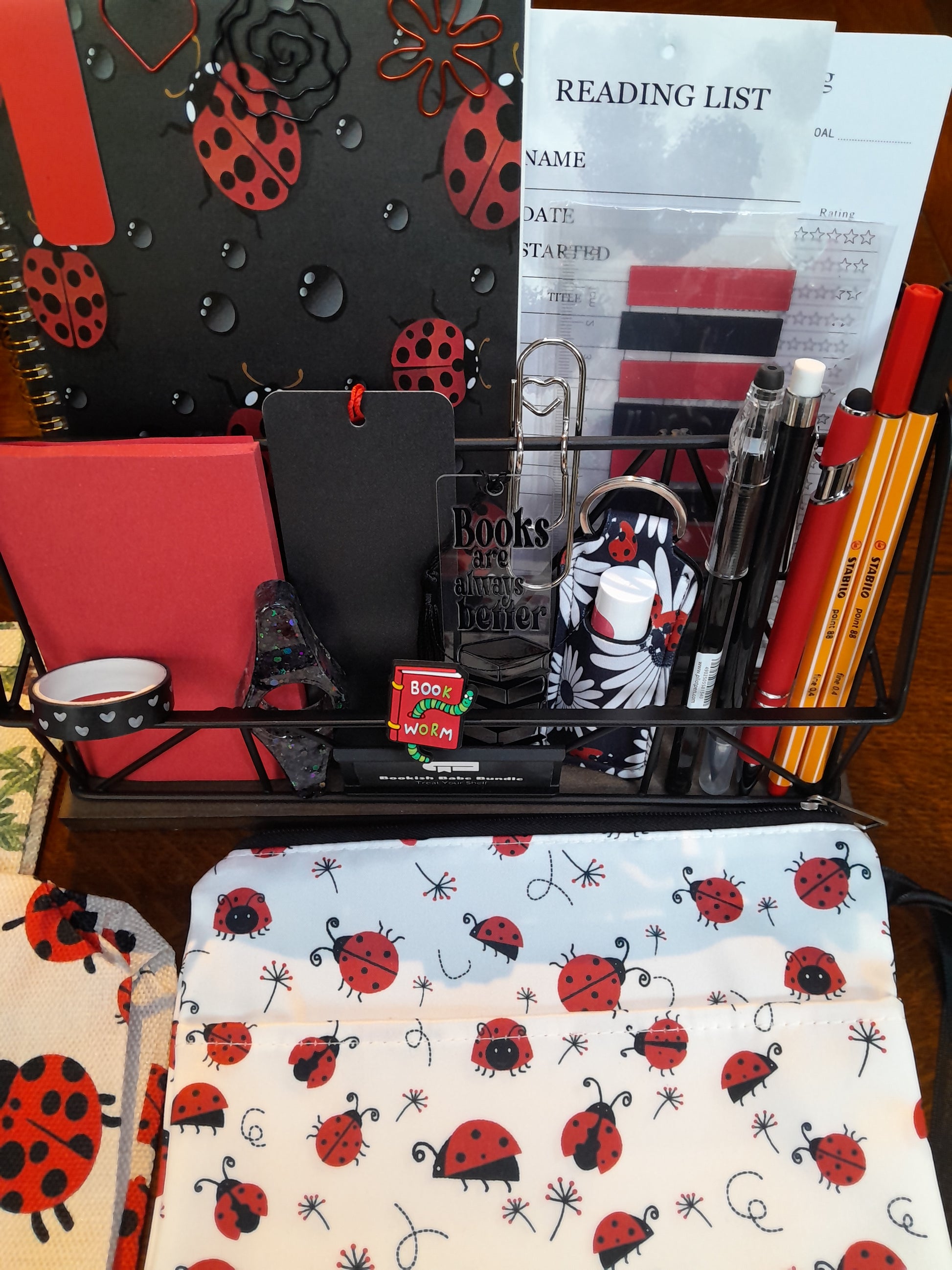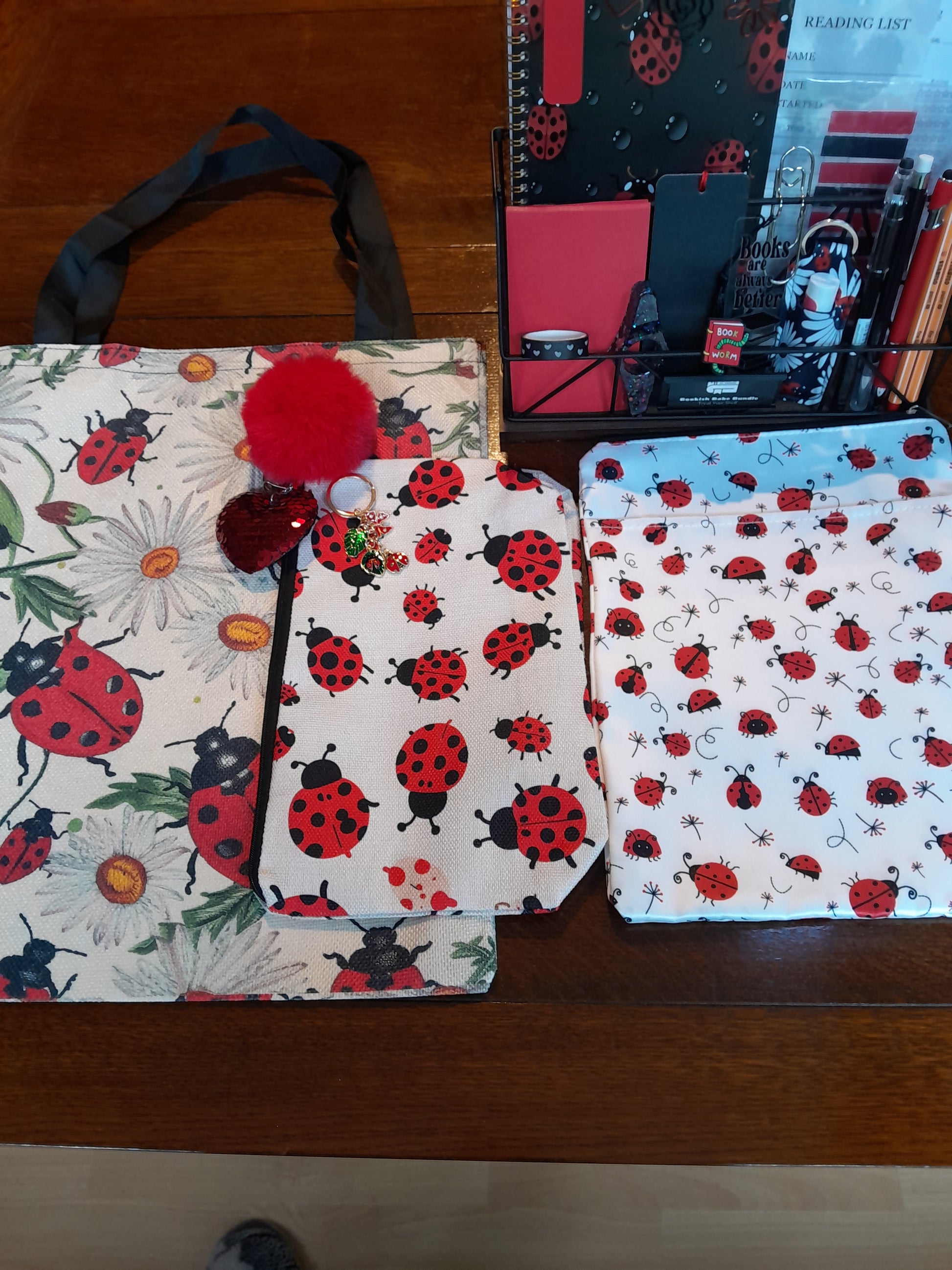 Ladybird themed bundle includes a tote bag, book sleeve, storage pouch and notebook. Also lots of lovely stationery.