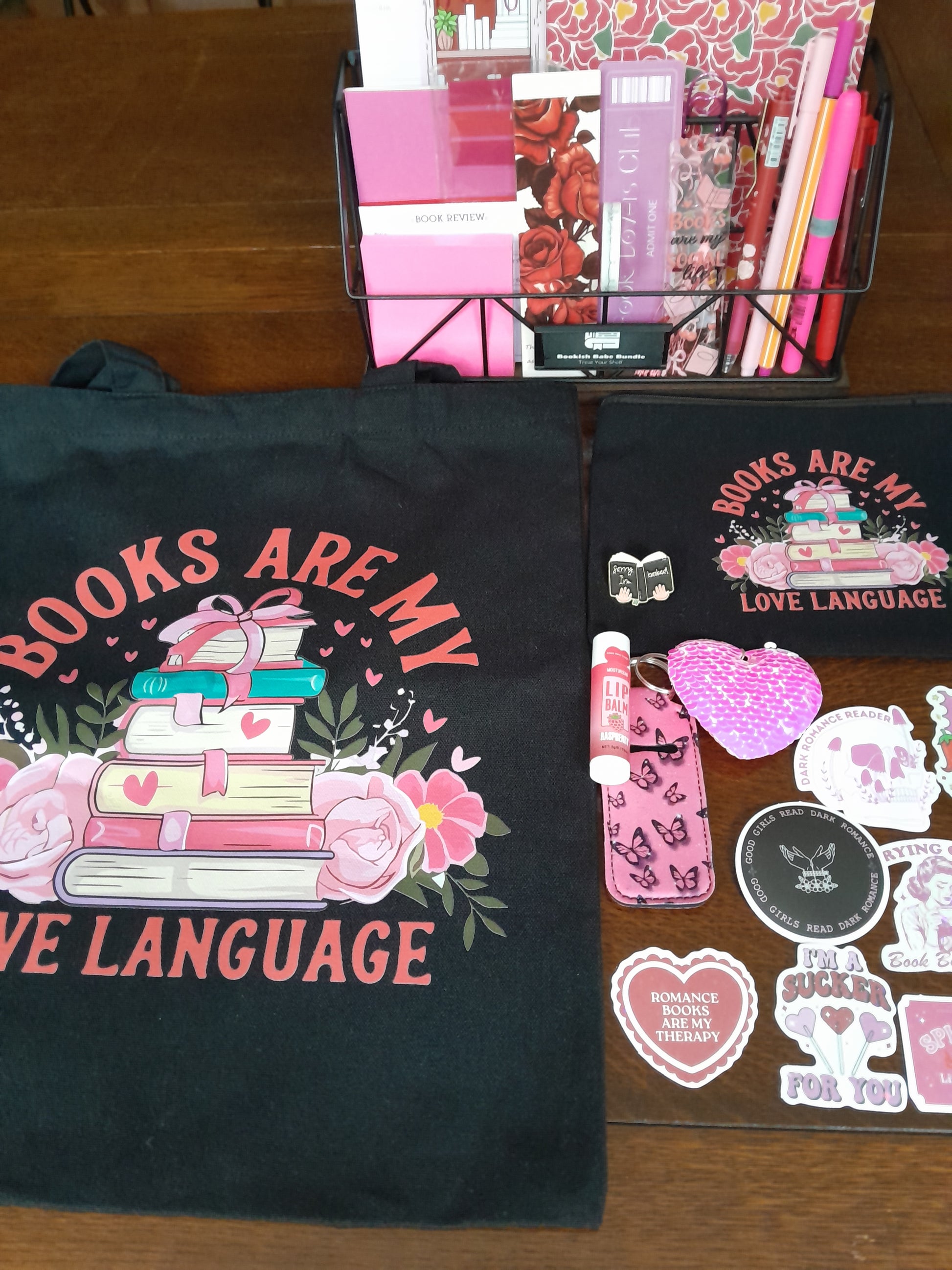 Beautiful black love language bundle. Includes a tote bag and pencil case also lots of lovely stationery.