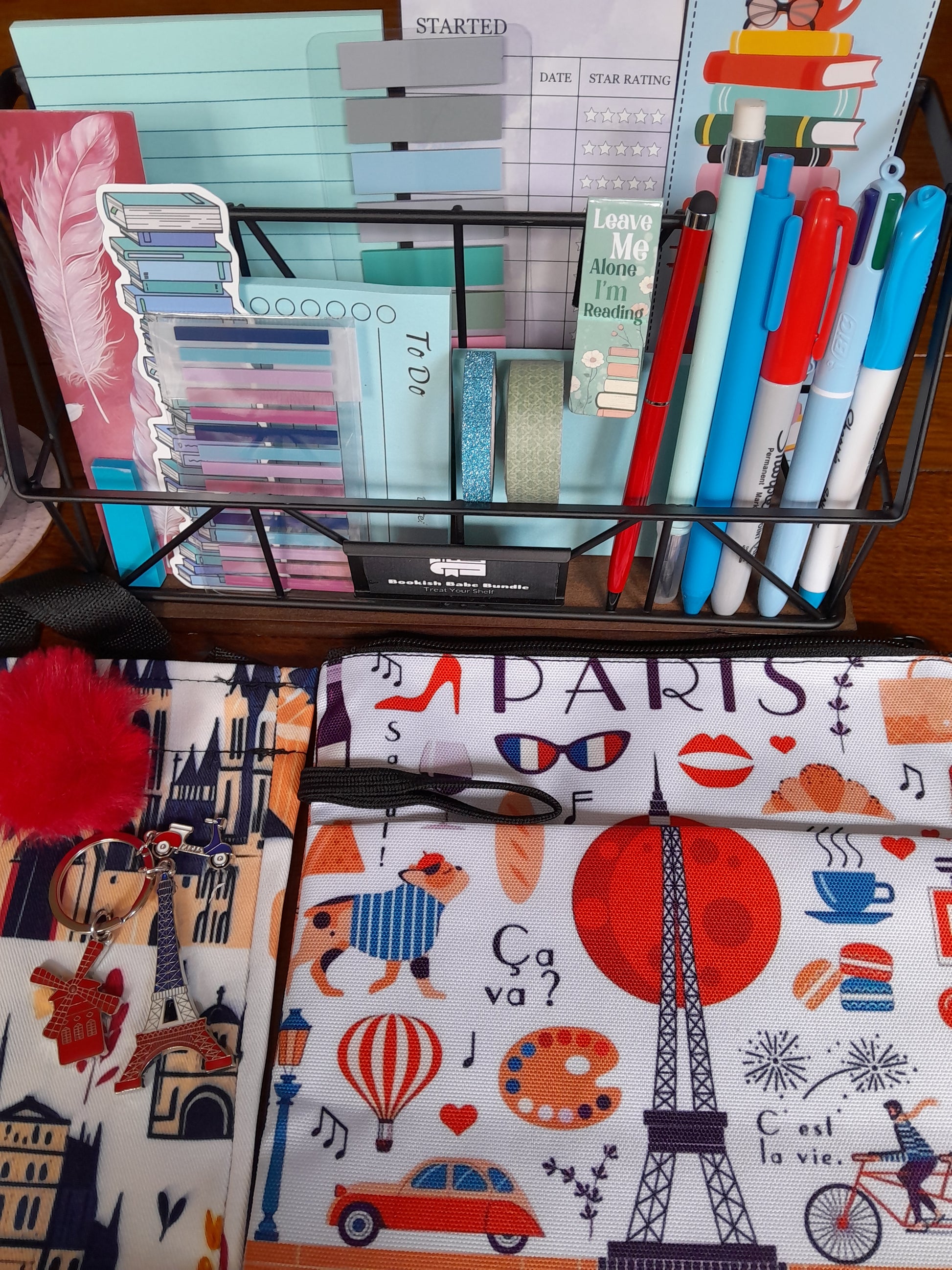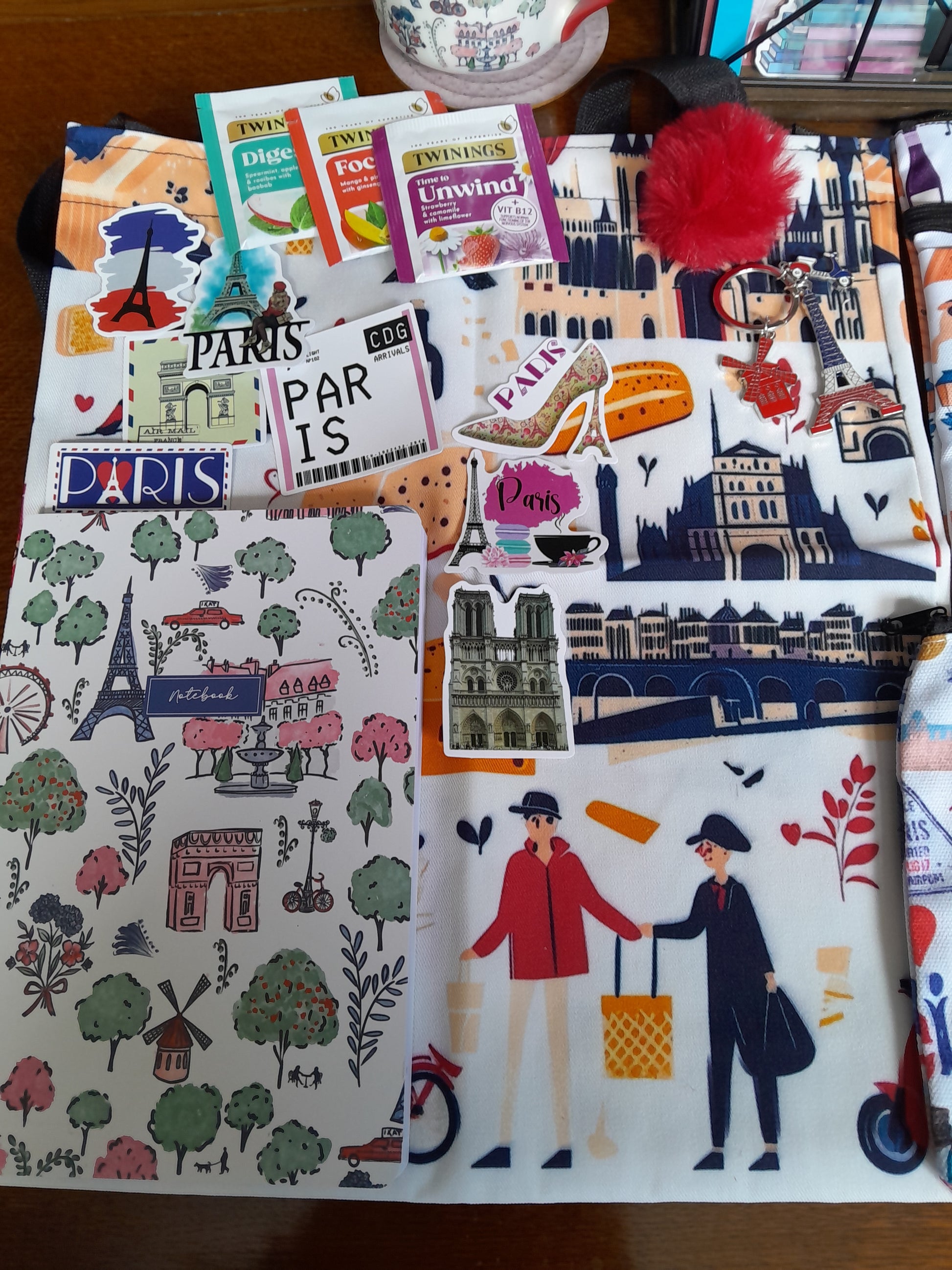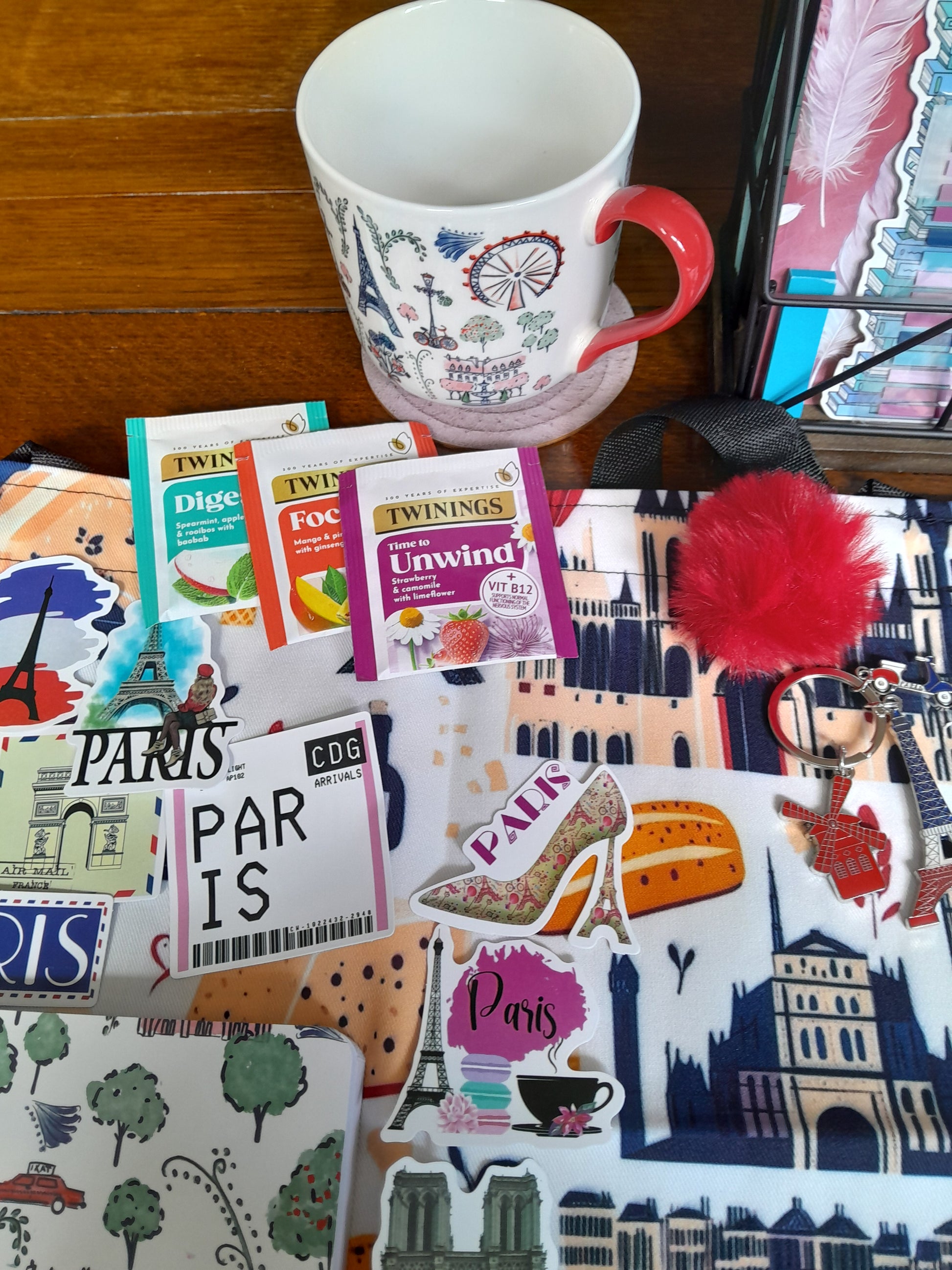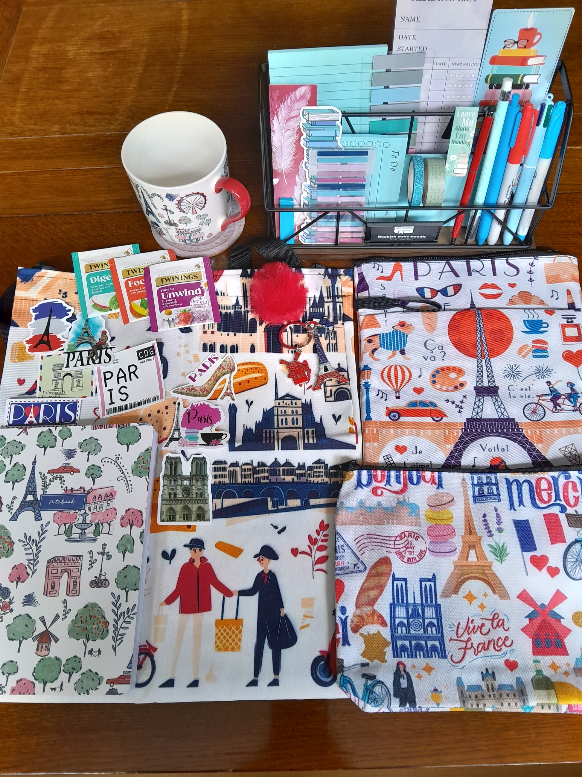 Paris themed bundle including a book sleeve, tote bag, storage bag, mug and notebook with lots of lovely stationery.