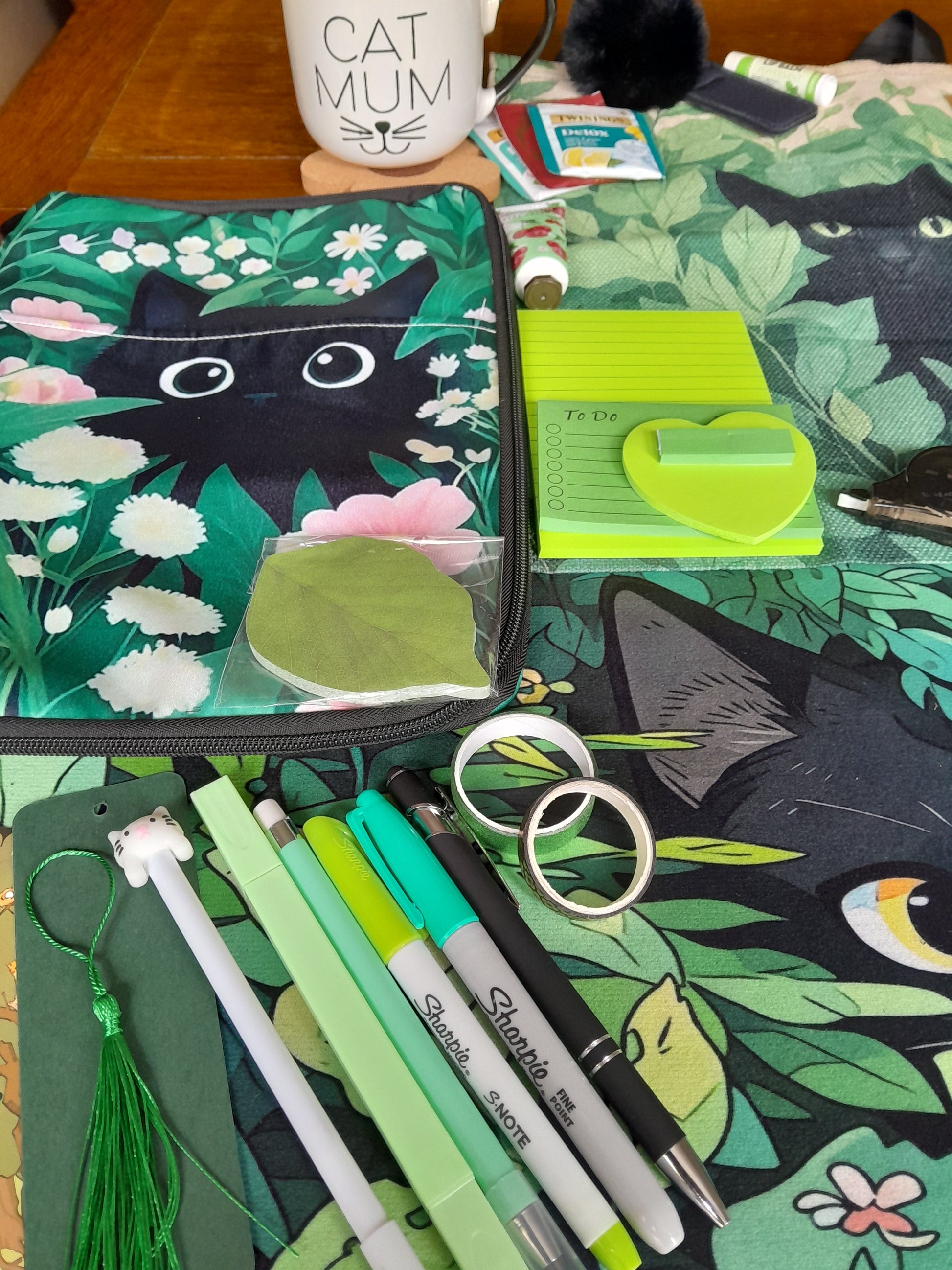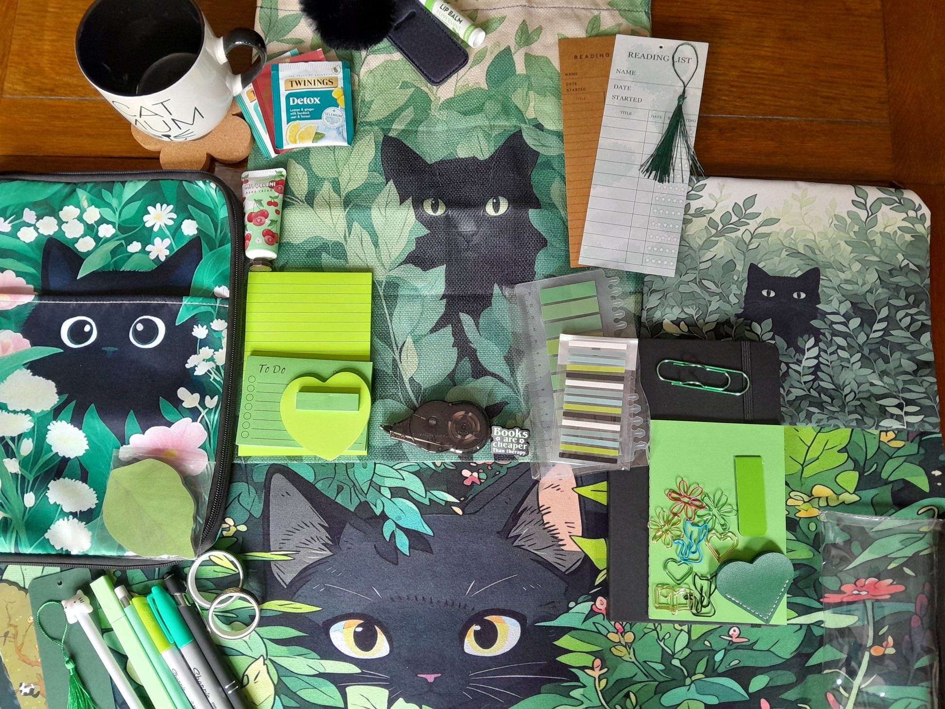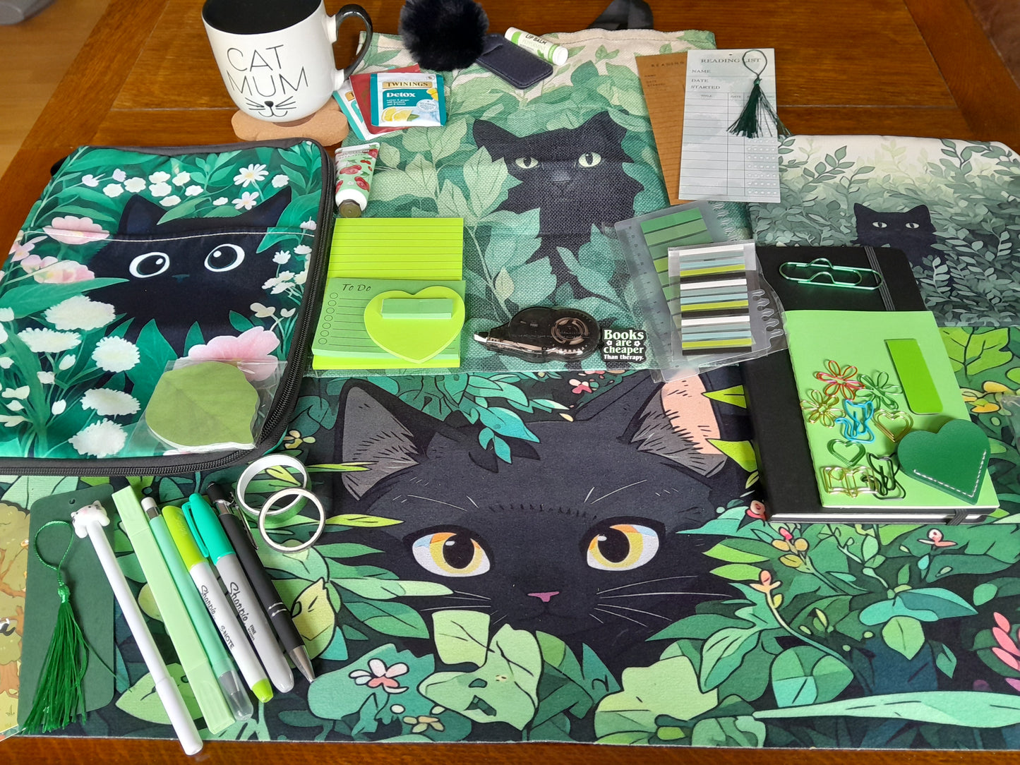 A lovely bundle for the black cat lover. Over 40 carefully selected items for your work space. Includes a desk mat, tote bag, book sleeve, large pencil bag and many other stationery items.
