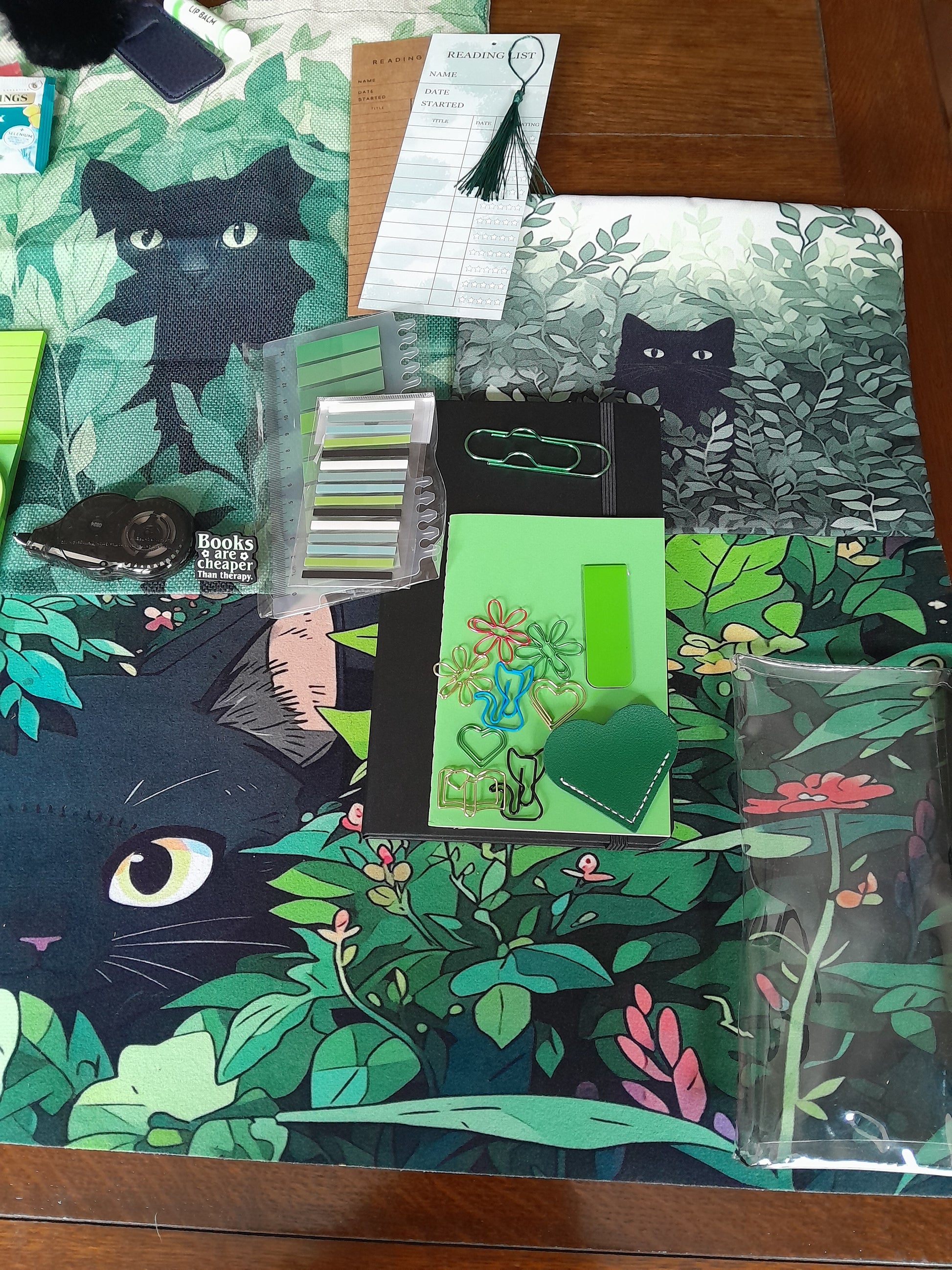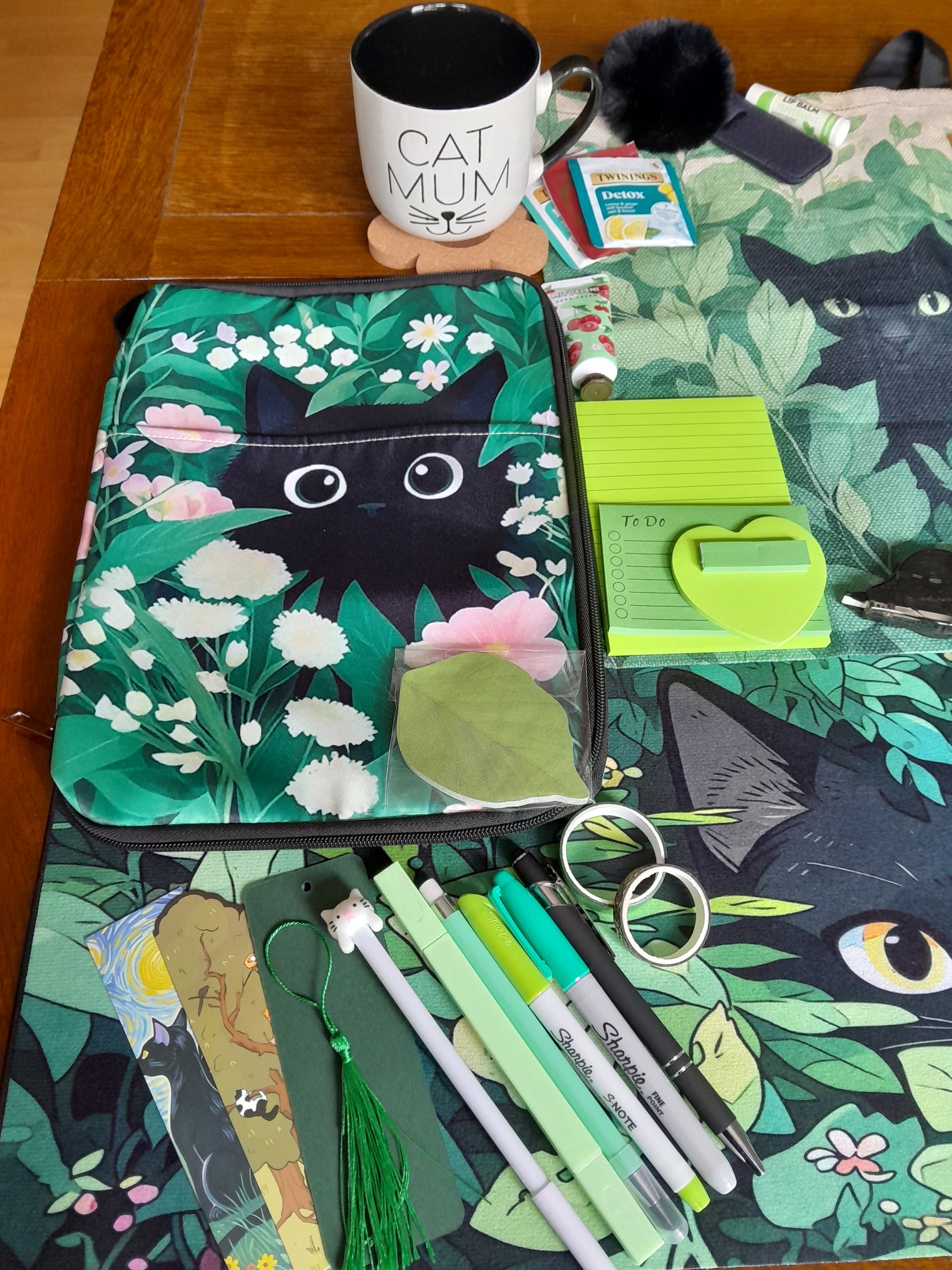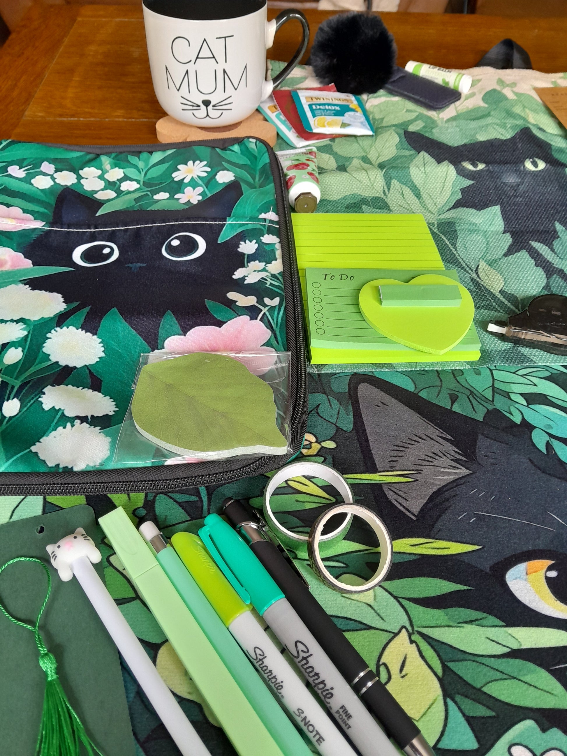 A lovely bundle for the black cat lover. Over 40 carefully selected items for your work space. Includes a desk mat, tote bag, book sleeve, large pencil bag and many other stationery items.