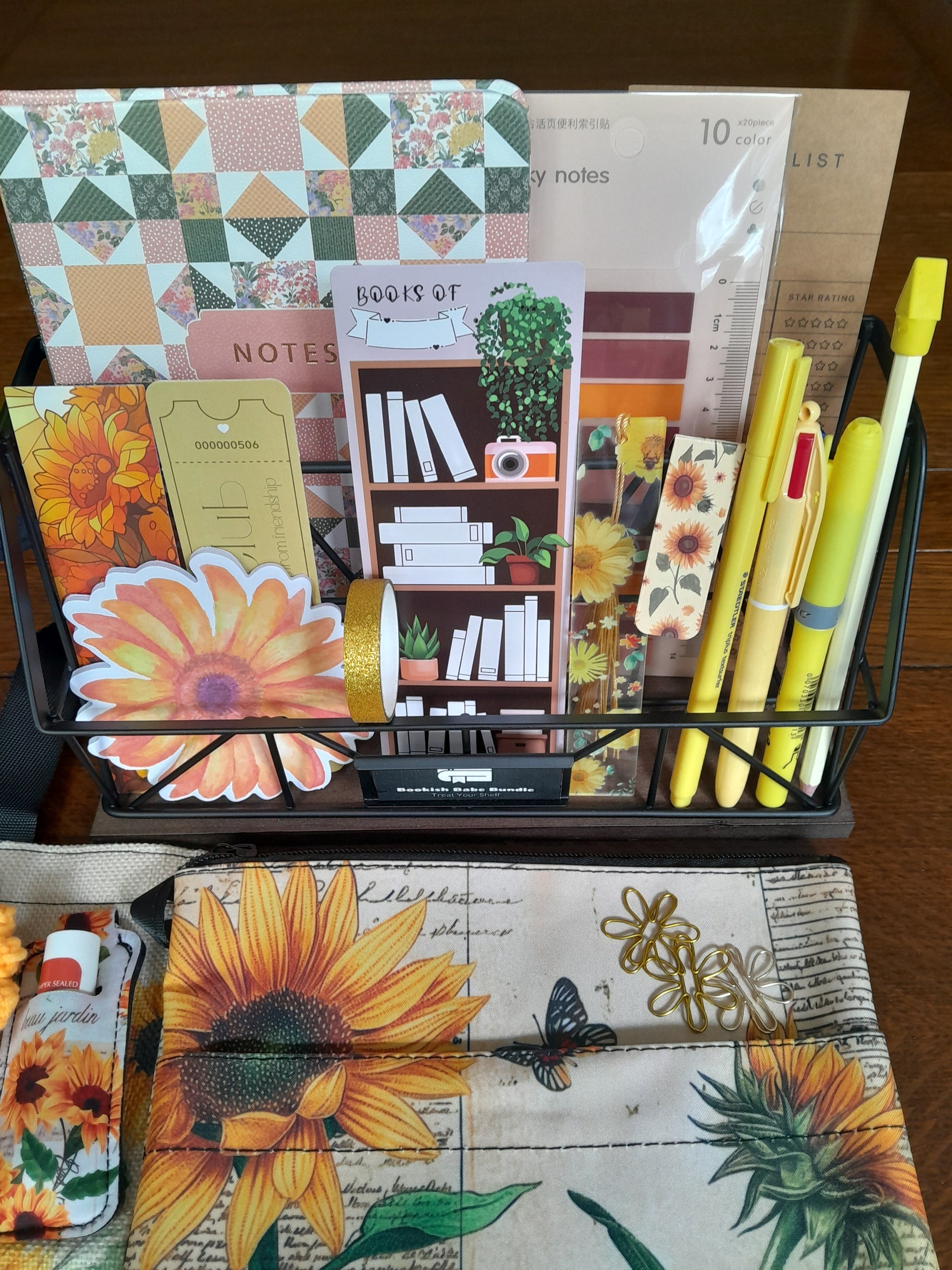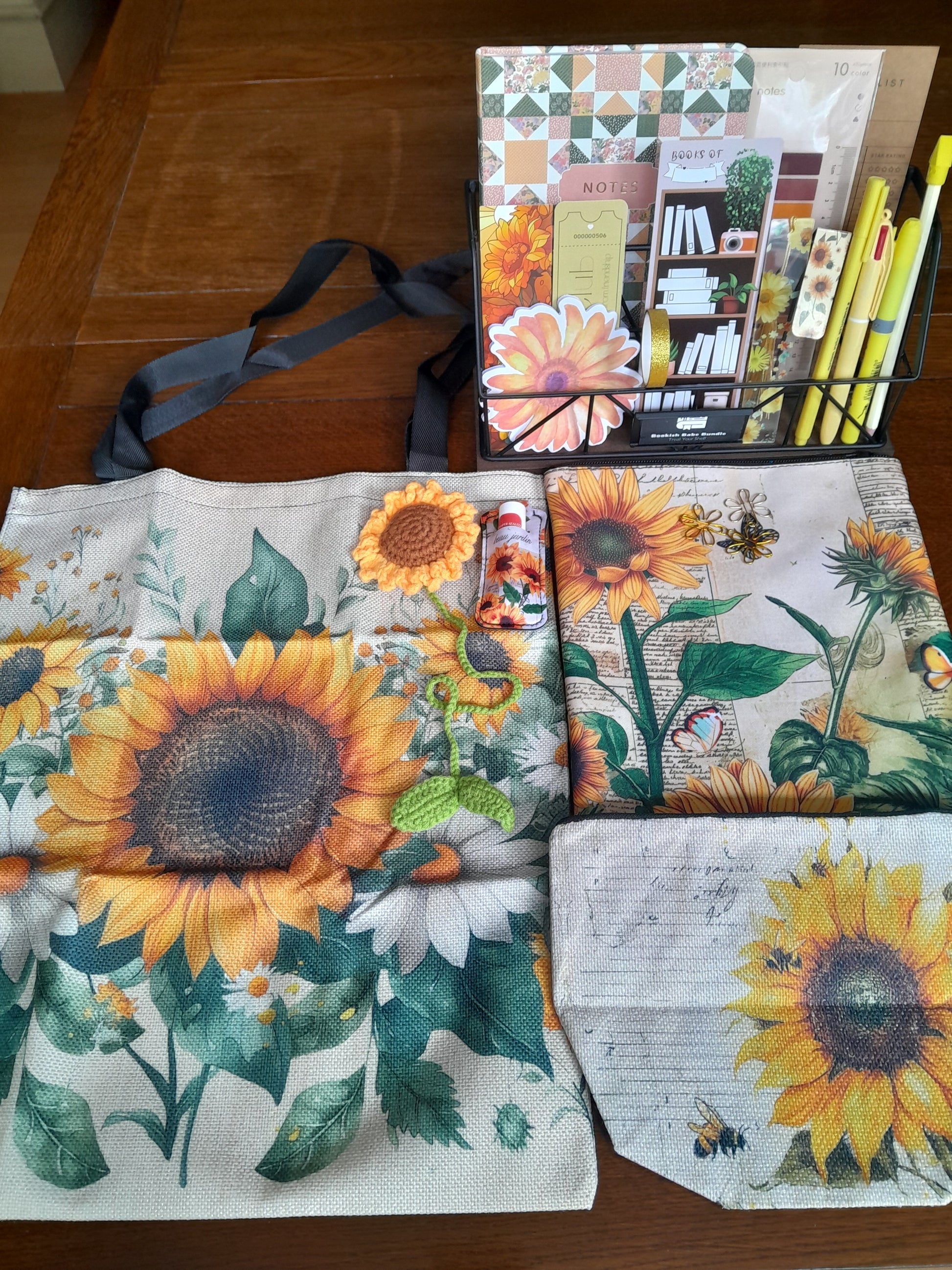 Sunflower bundle, tote bag, book sleeve and storage pouch. Lots of lovely stationery included.