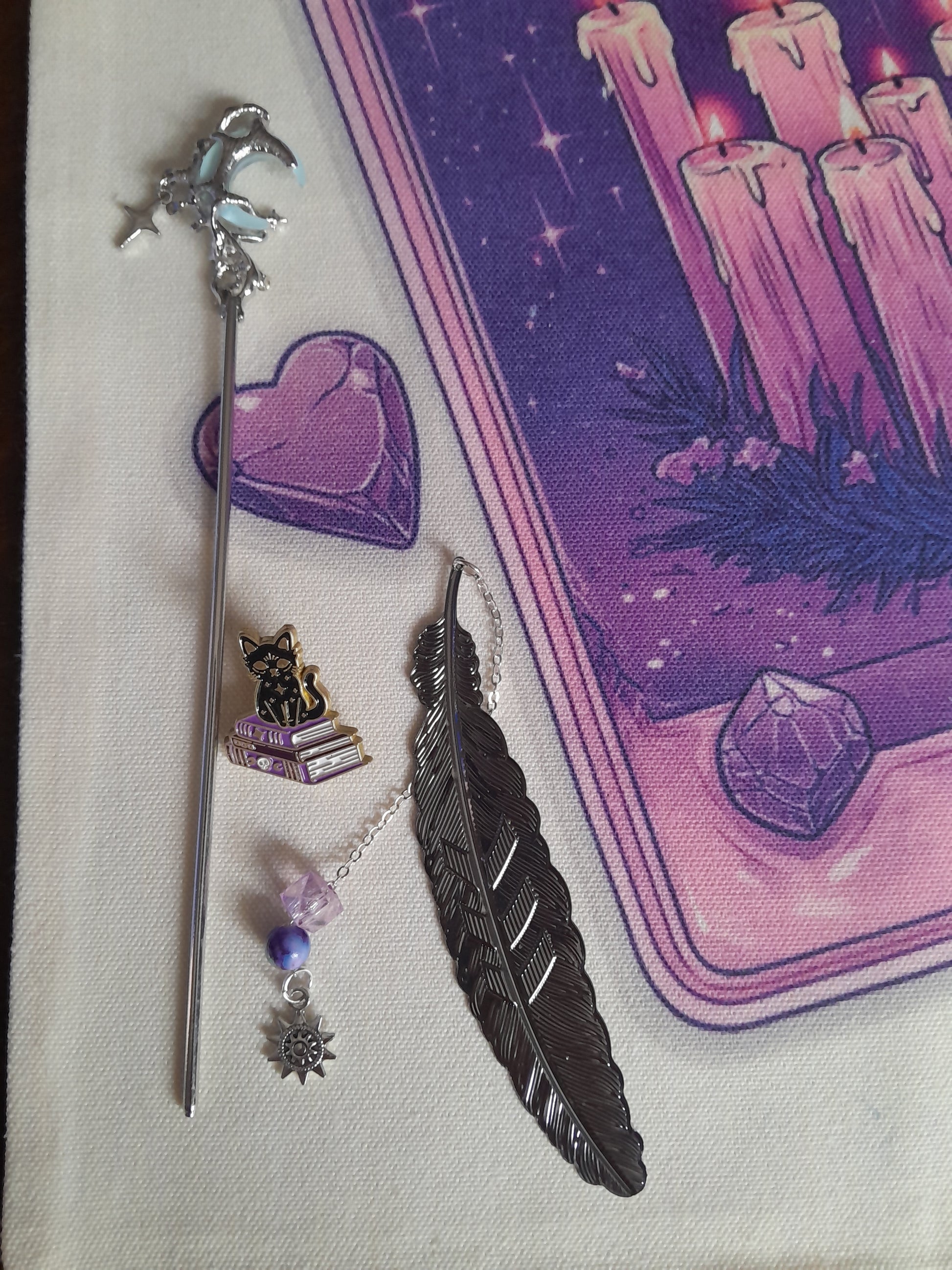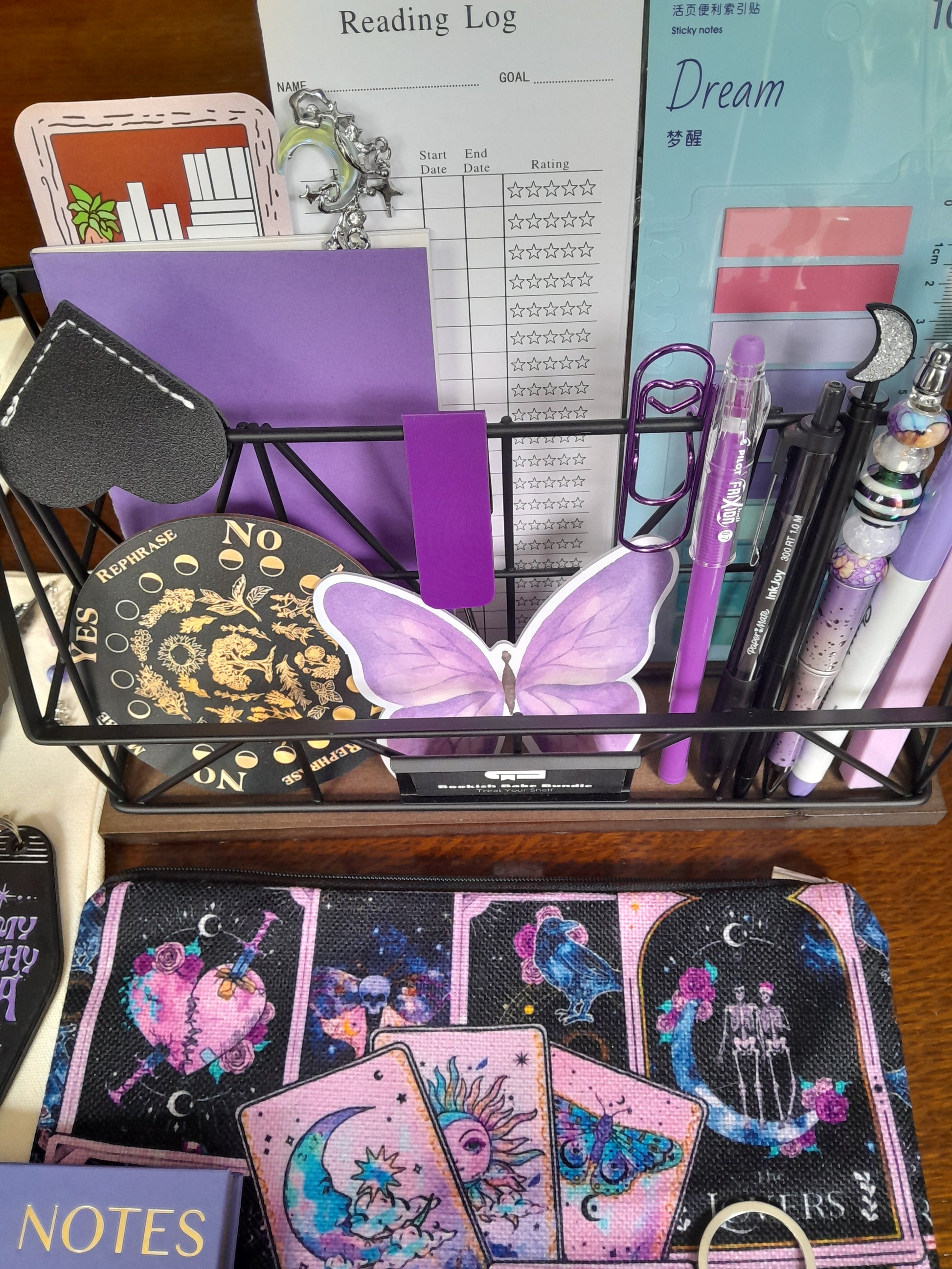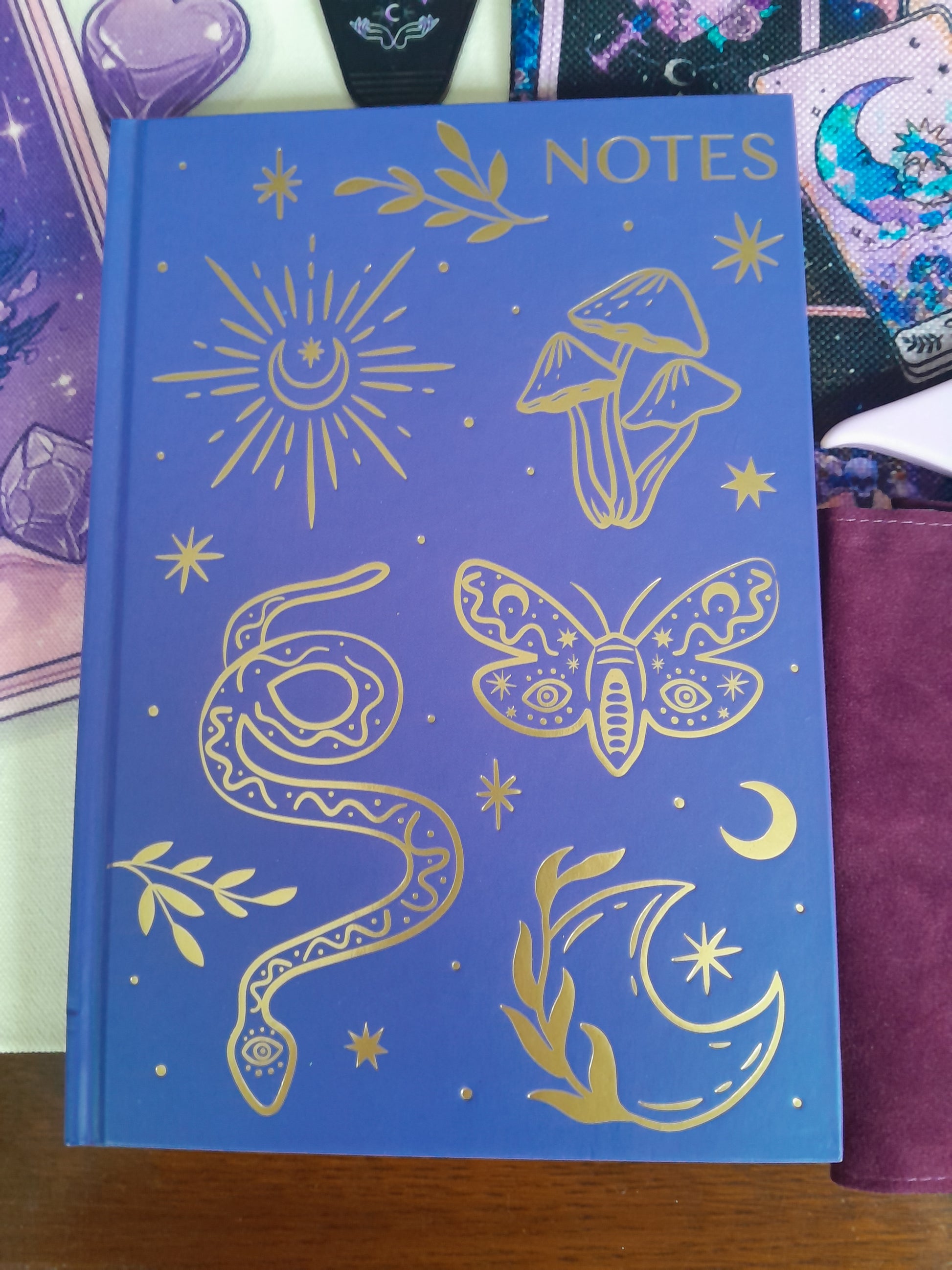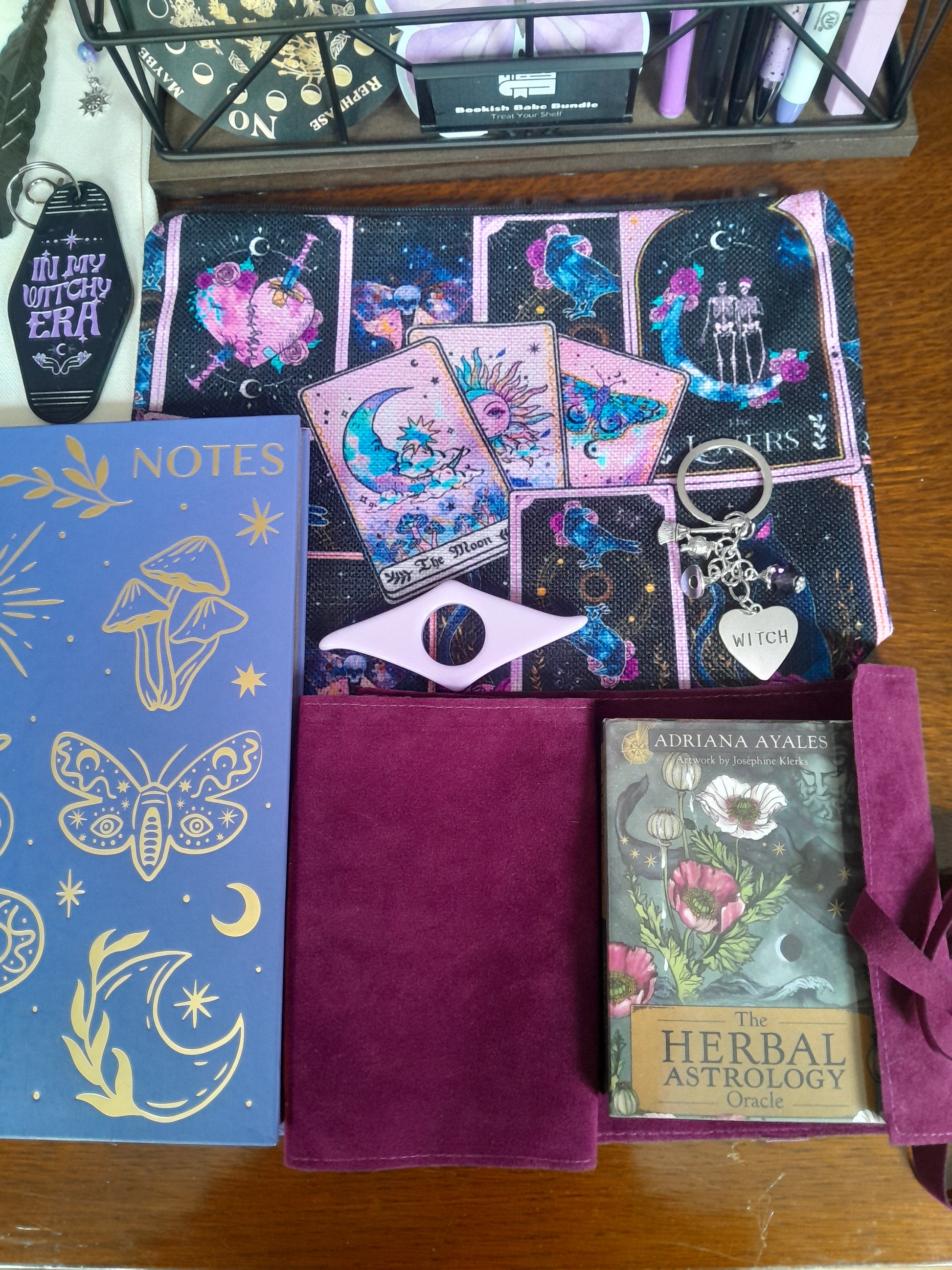 Tarot/ witchy bundle includes a tote bag, storage pouch, brand new oracle cards and a velvet storage pouch. Nice quality notebook and lots of lovely stationery. I always include freebies too!