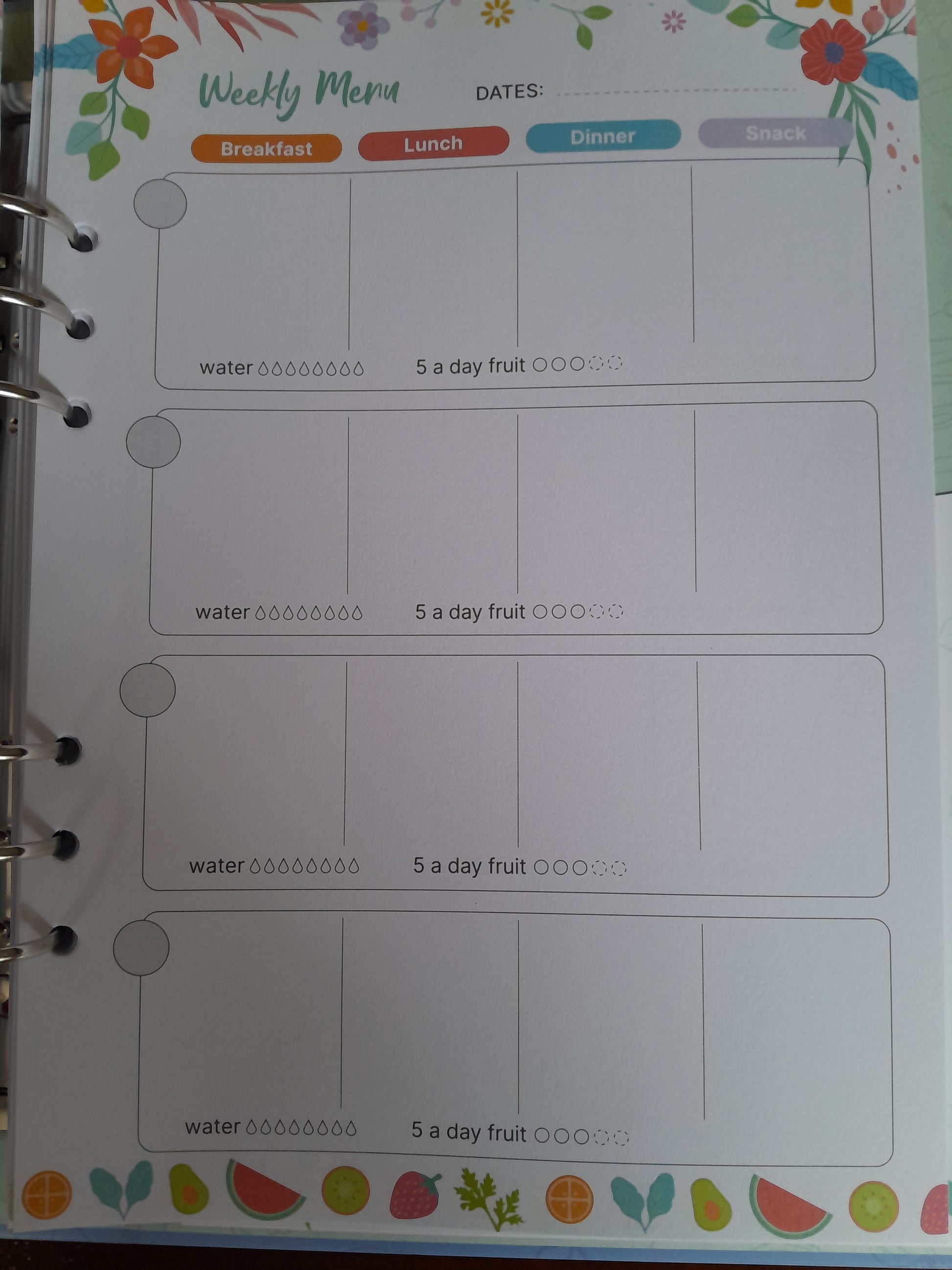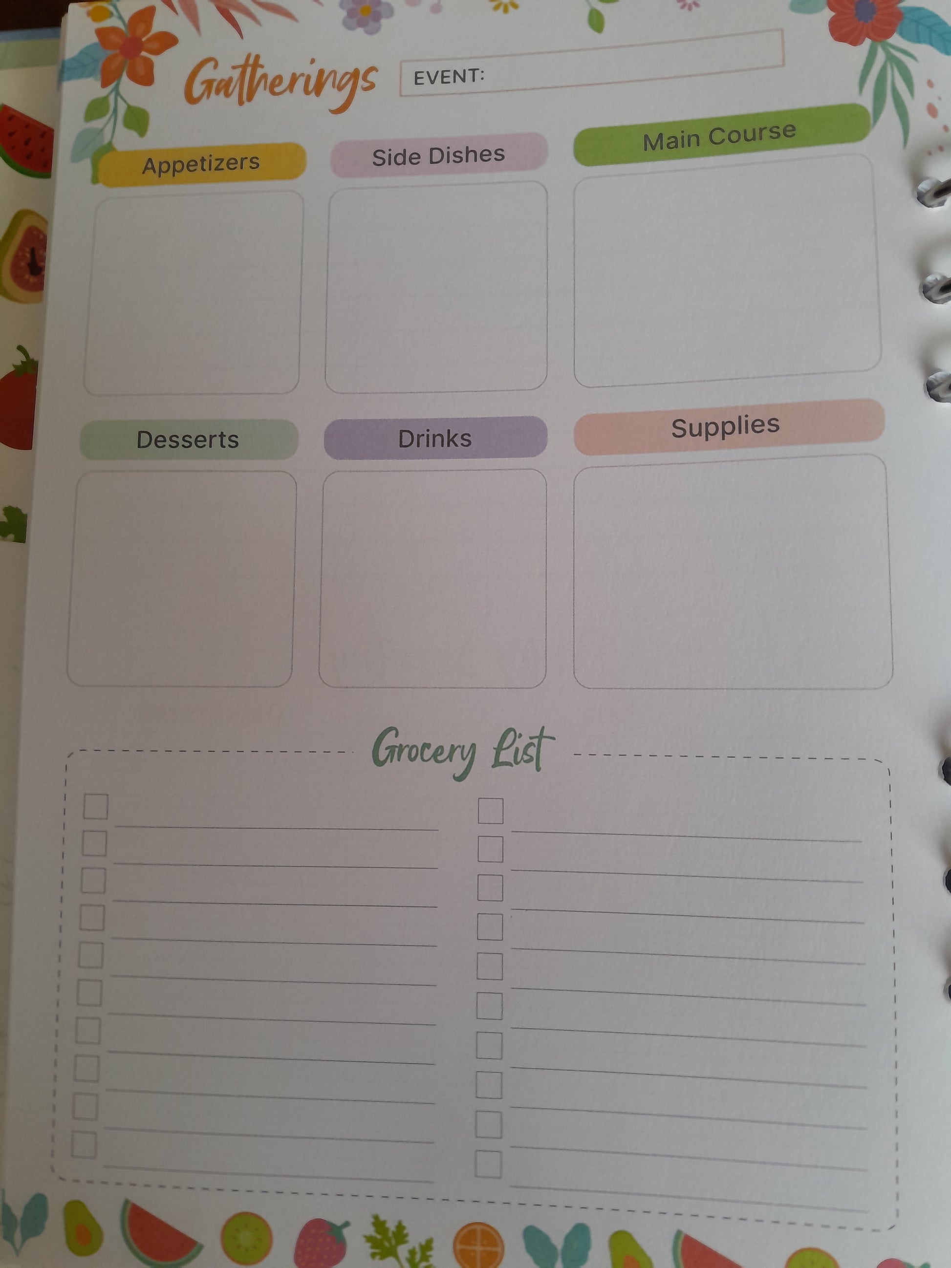 Easily plan meals day by day, includes shopping lists and inventory pages also expense trackers and event planning.